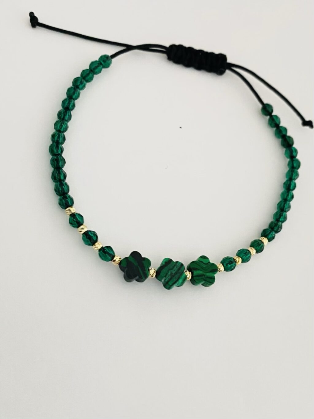 14k gold 2mm beads and one 3mm and green beads with 5mm middles malachite natural
