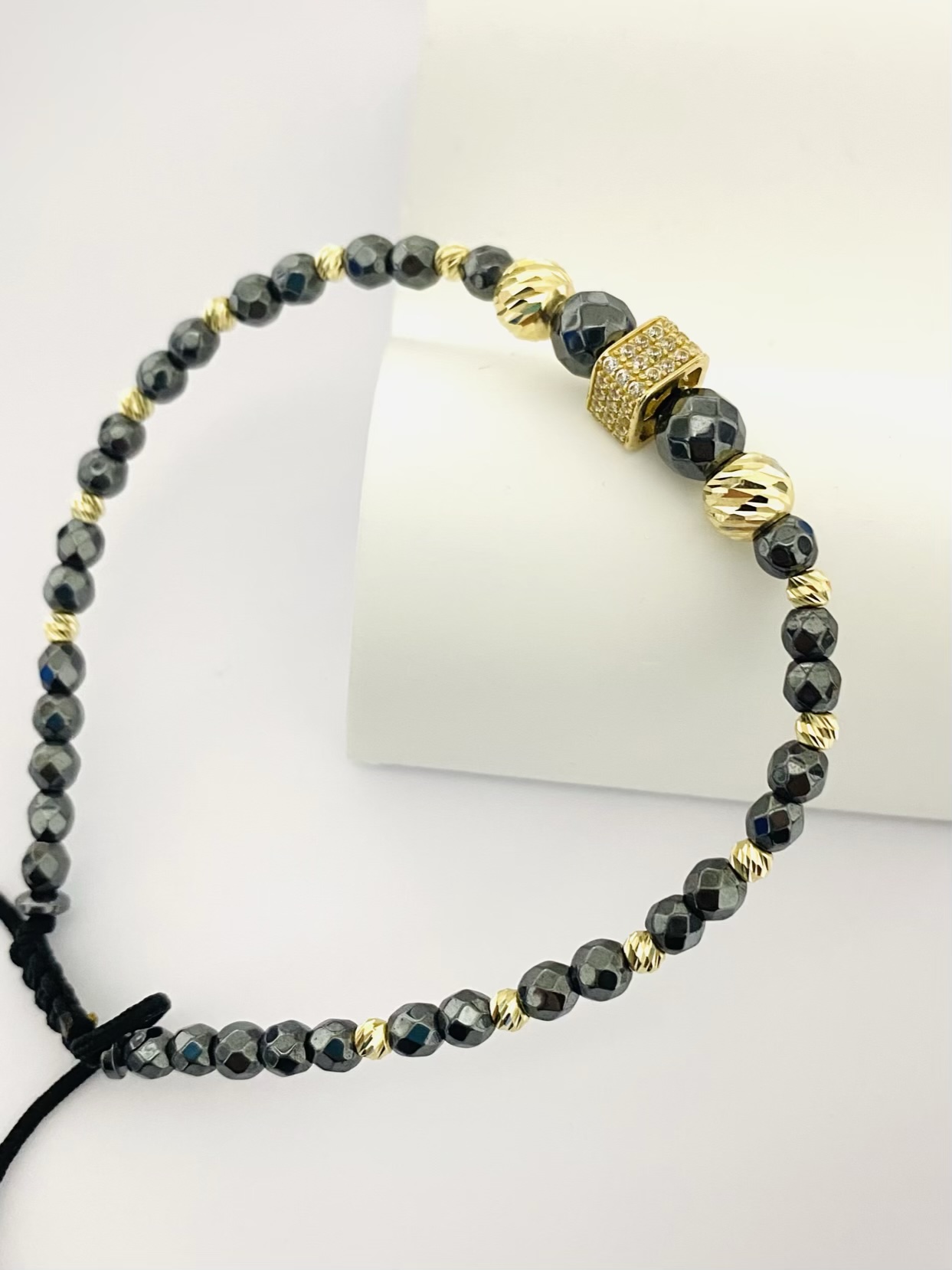 14k gold 3mn and 6mm beads and natural 4mm spinel hematite beads GMS10 men size bracelet