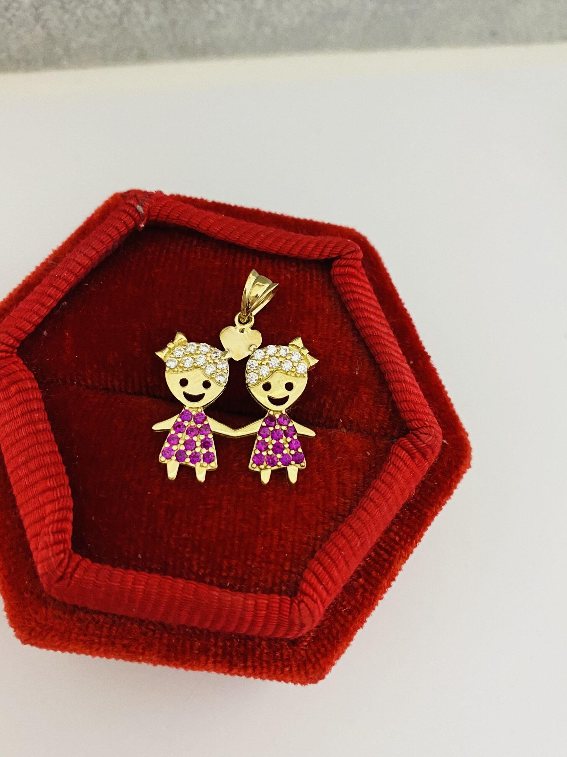 Be the first to review “14k Gold 2 GIRLS PINK STONES pendant”