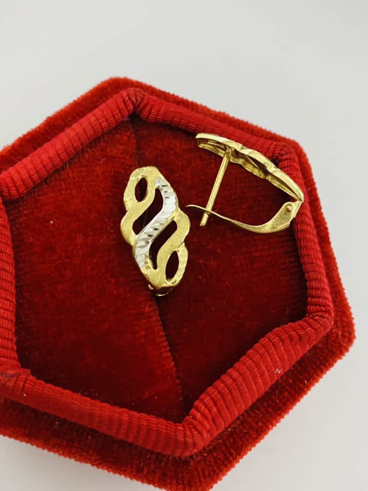 Be the first to review “14k yellow gold curly earrings with white gold model on middle Janu12”