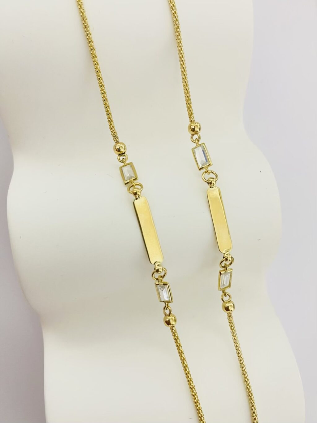 Wipe with a soft cloth after wear. Avoid harsh chemicals and ultrasonic cleaners if stones are present. Store separately to prevent surface scratches. An occasional gentle polish keeps the lustre bright.