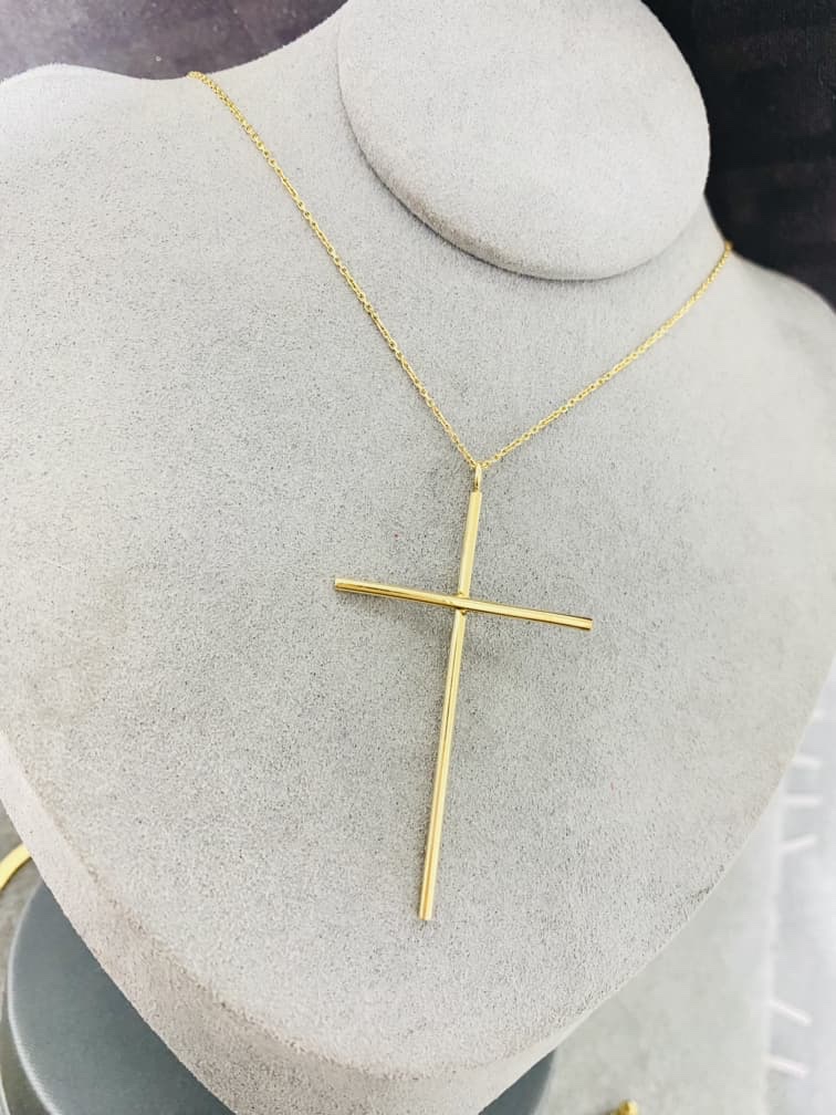 14k gold long cross necklace MartA1