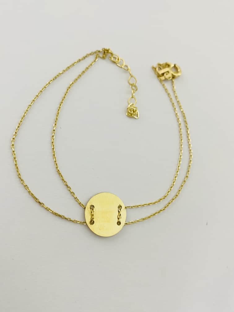 14k gold double string bracelet with circle what can be engraved IAN140