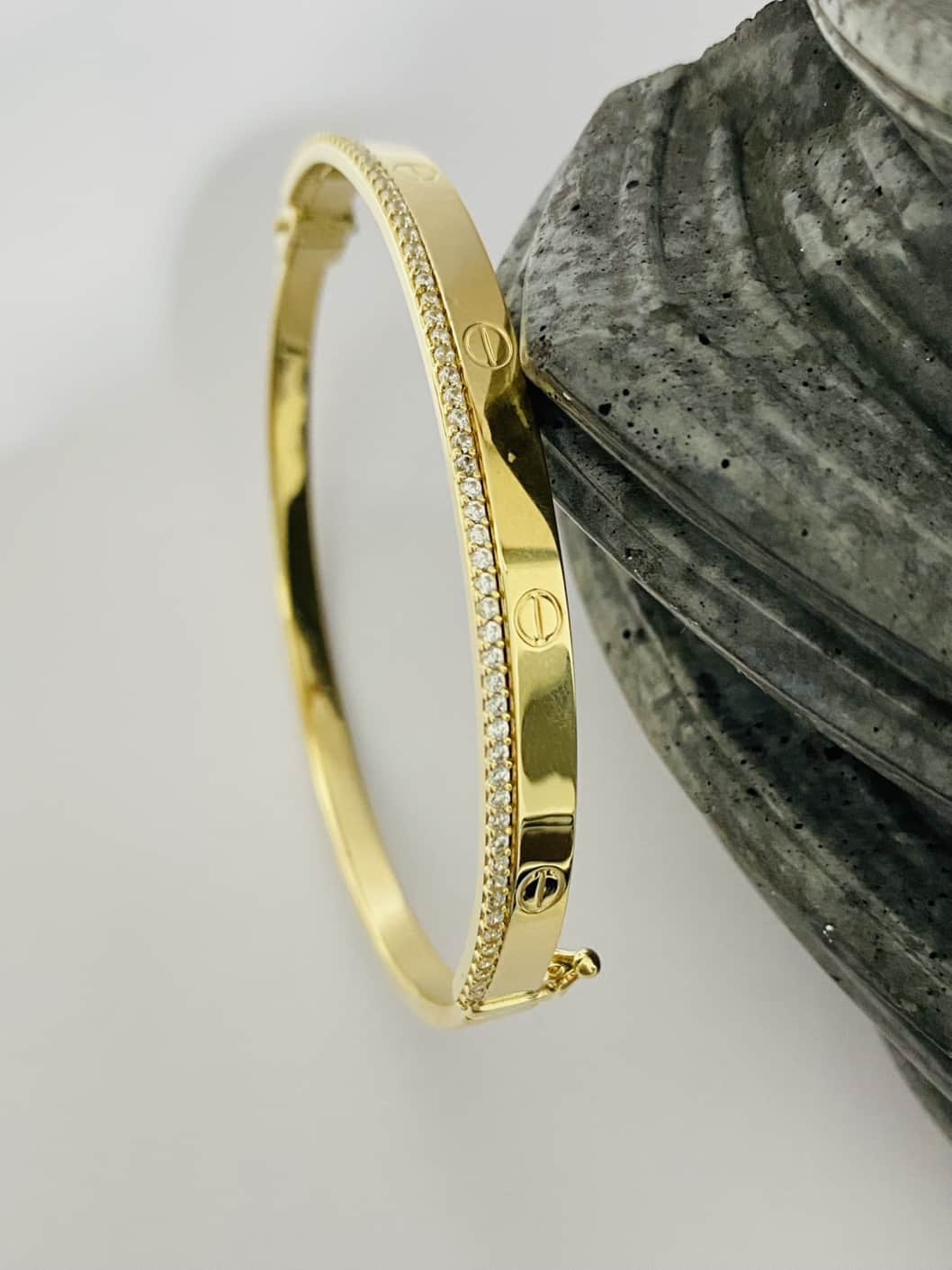 All bangle bracelet have inside a Spring metal what hold them closing to don’t break as the gold is a soft material ( the estimated weight is 0.5-0.6g)