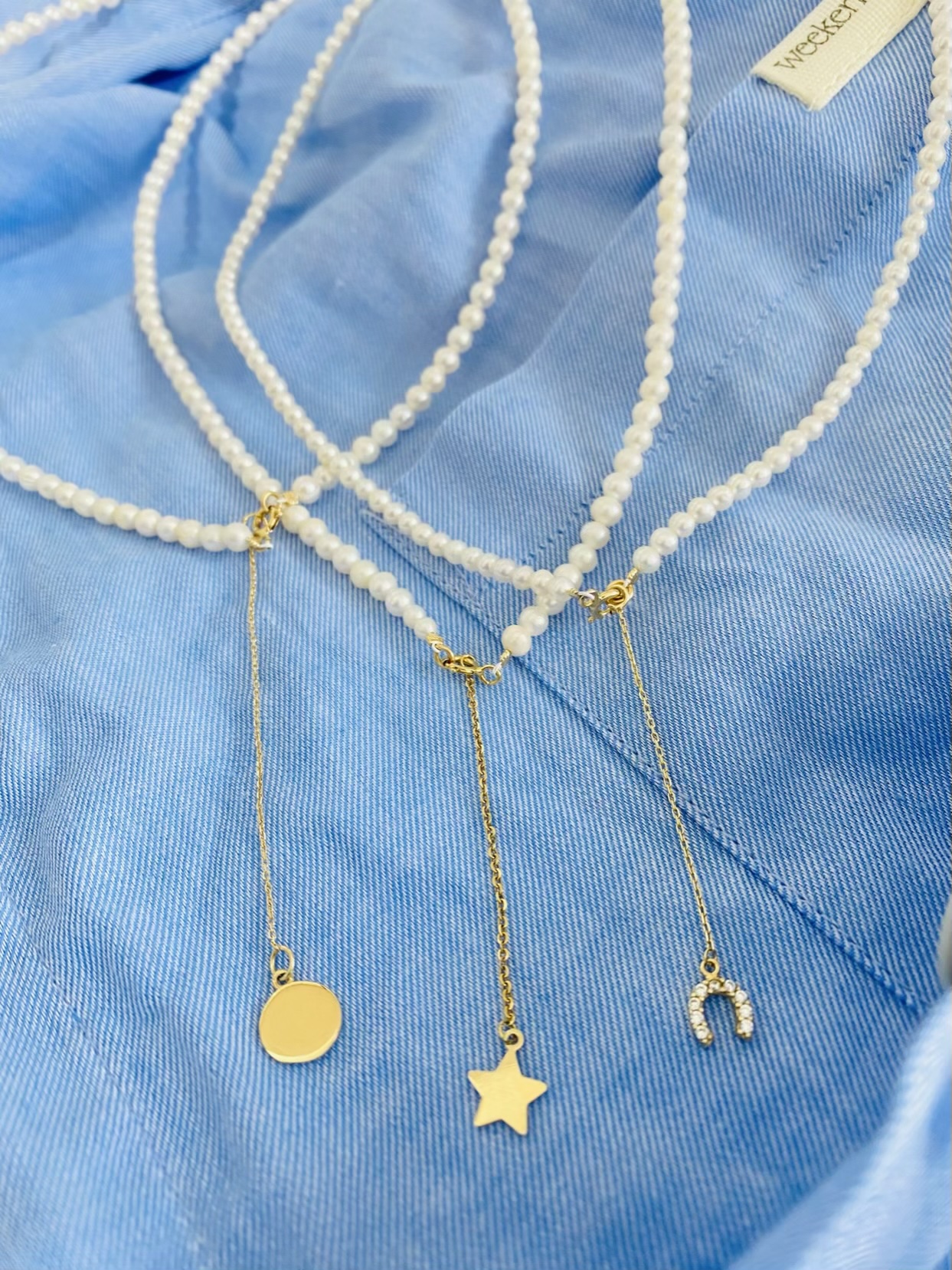 14k gold long chain pendant and 3-4mm freshwater pearls best-selling FP-11