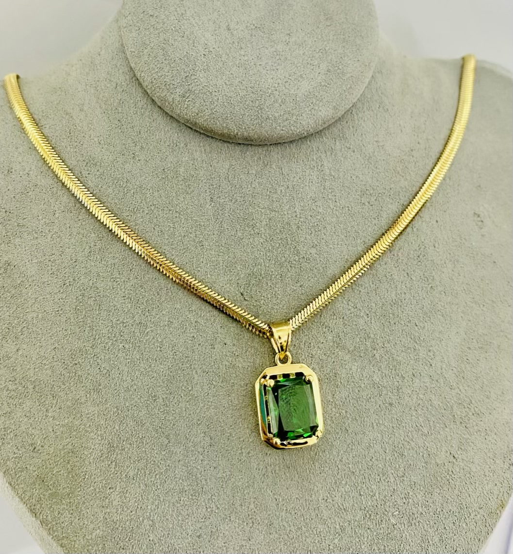 14k gold green stone necklaces 45cm JULBA051