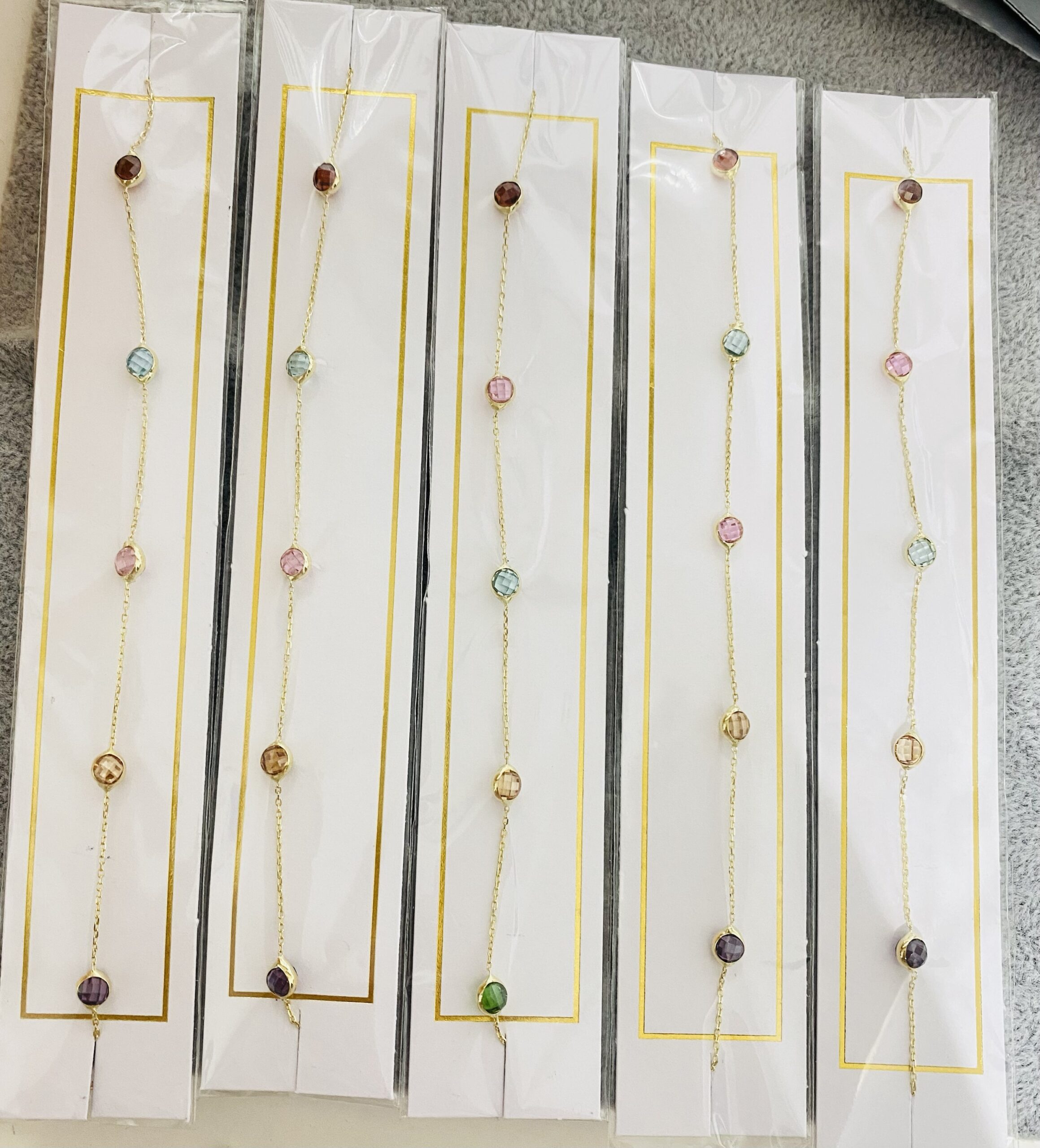 14k gold thin bracelet Octm12c randomly colour stone