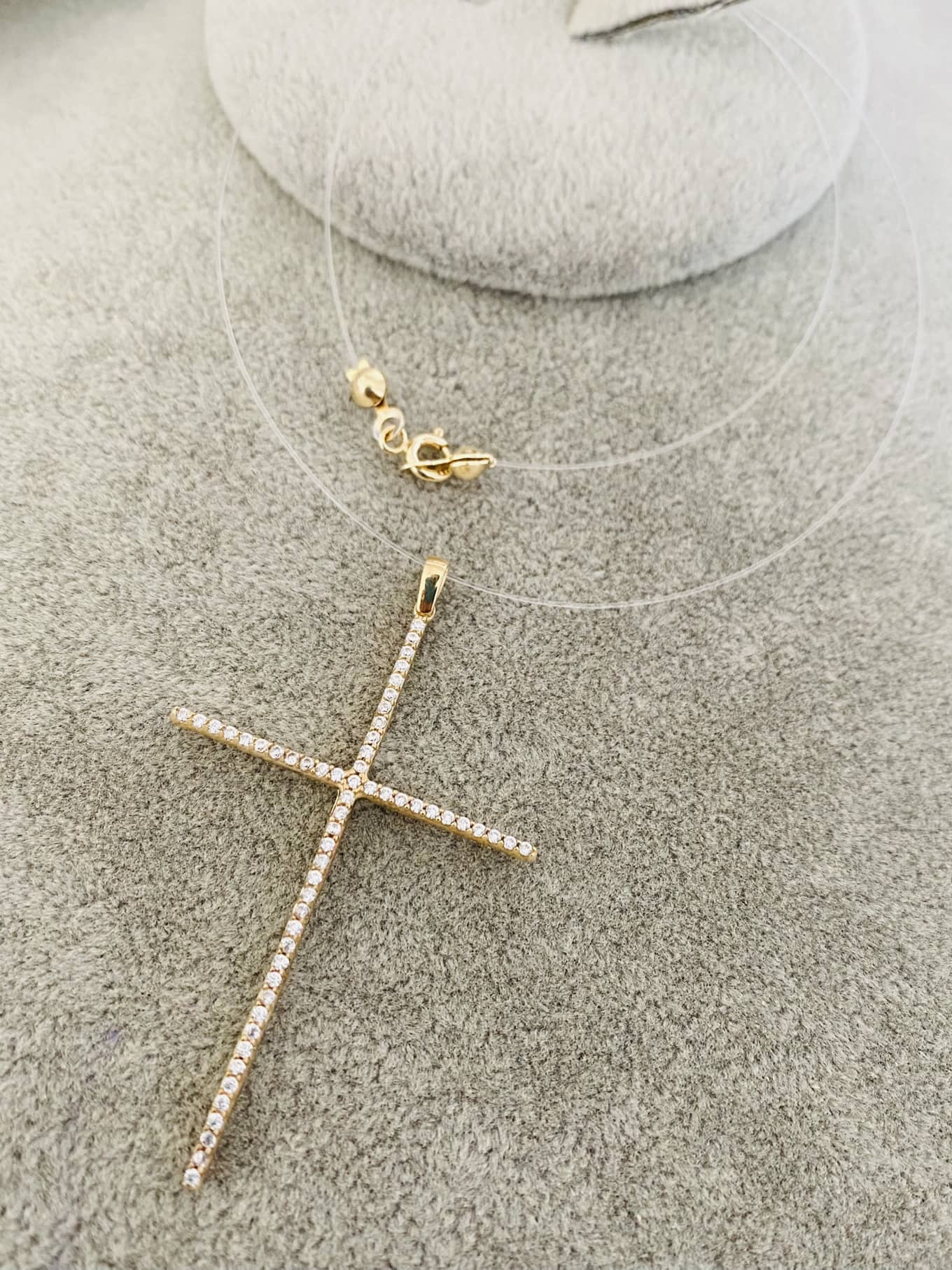 Be the first to review “Clear chain with 5.5cm 14k gold cross”