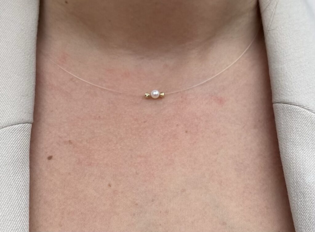 Be the first to review “Clear chain with pearl and 14k gold beads 39.5cm”