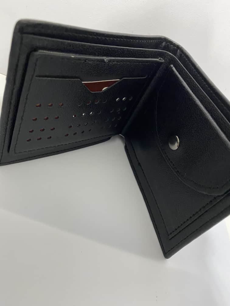 Description Type: Bifold Colour: Black Card slots: 5 Note slots: 2 Coin slots: 1 Approximate dimensions (Unfolded): L- 23cm, W- 10cm Approximate dimensions (Folded): L- 11.5cm, W- 10cm, D- 1.8cm