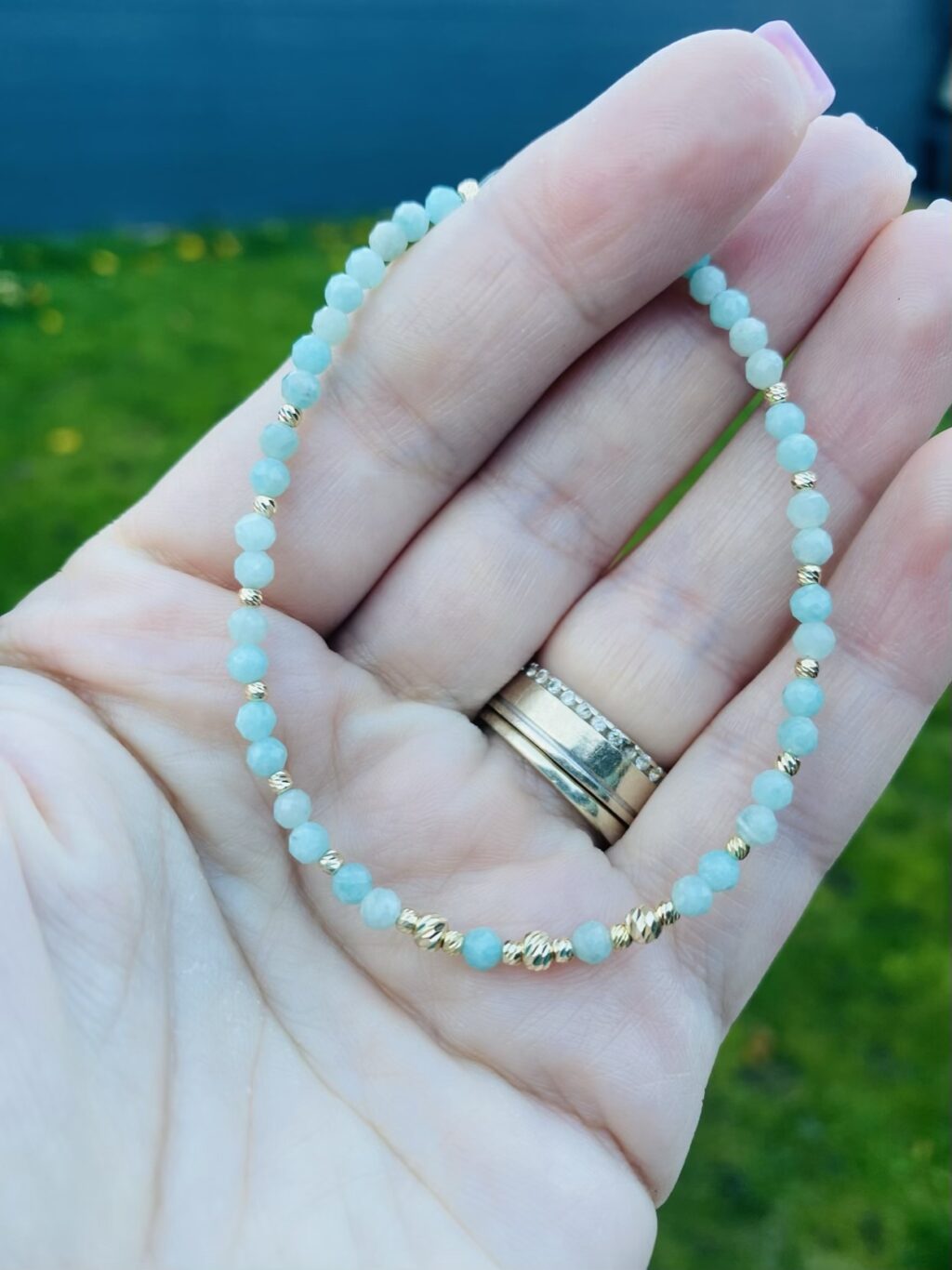 Be the first to review “Amazonite 3mm and 14k gold beads NB4A 18cm”