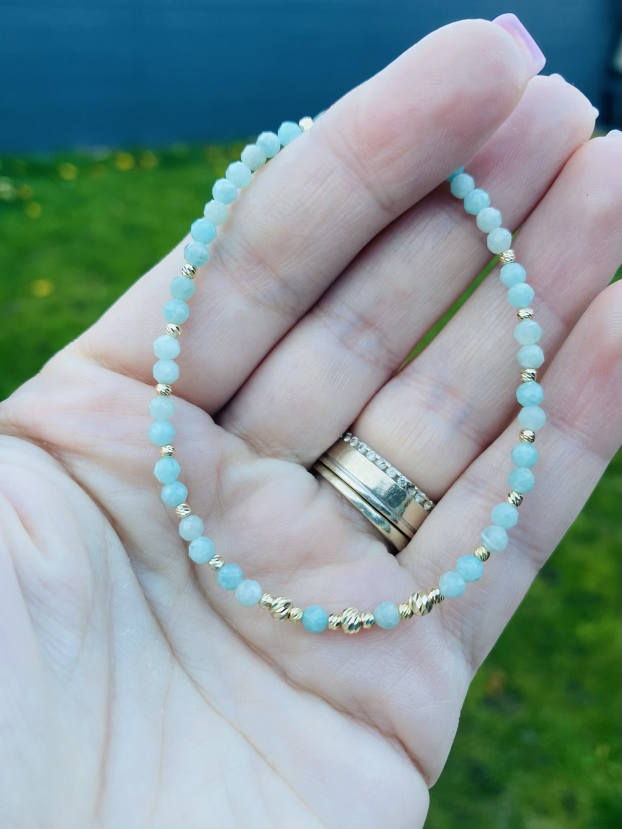 Amazonite 3mm and 14k gold beads NB4A 18cm