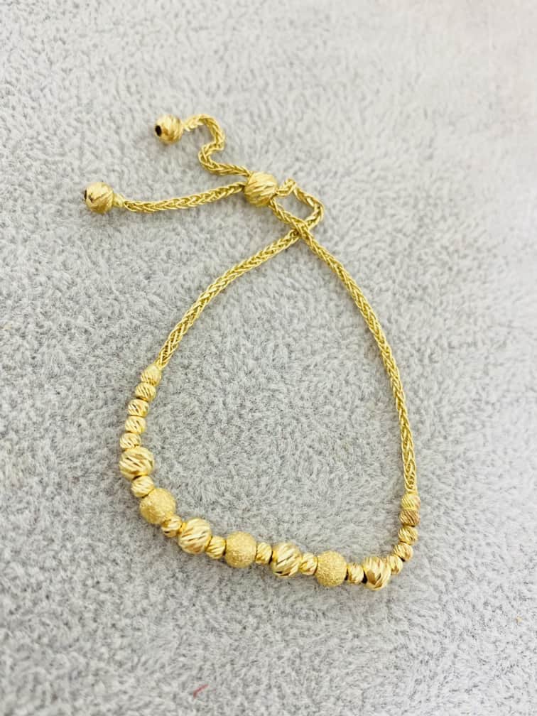 Yellow 14k Gold Bracelet adjustable with round gold beads on Ja 12
